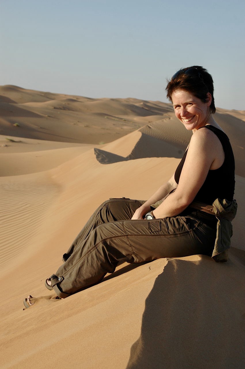 Aan het eind van de middag wandelen we de woestijn-duinen in en ook hier zien die er imponerend uit. Je kunt je heel goed voorstellen dat je hier de weg kwijt kunt raken. Bij het laatste daglicht gaan we terug naar het Camp om ons gereed te maken voor het buffet. Nadat we eerst een soepje hadden weg geslurpt, moesten we even mee naar buiten om ons vlees op te graven. In Nederland hebben we een stoofpannetje, maar hier hebben ze een stoofgat in de grond. Ze wikkelen een lam in bananenbladeren, leggen dat in een gat in de grond, berg zand er overheen en na 24 uur heb je een heerlijk stukje vlees.