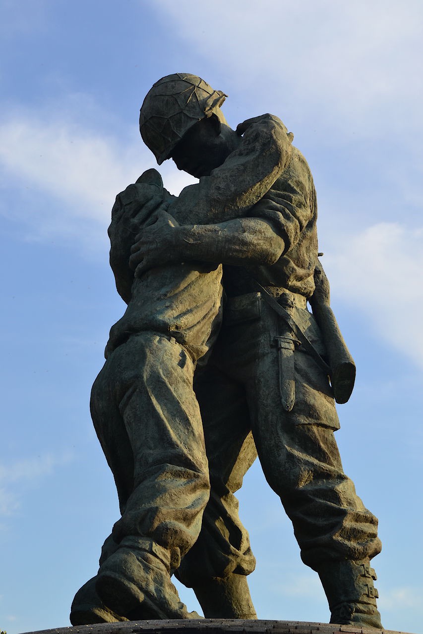 Nadat we terug zijn geweest bij het hotel, rekken we de beenspieren nog een keer voor een wandeling naar het War Memorial Museum. Diana had plaatjes gezien van de stanbeelden bij dit museum en die wilde ze met eigen ogen (en camera) gezien hebben. Na een wandeling van ruim een uur komen we bij het museum aan en dan blijkt de plek waar de standbeelden staan omgeven te zijn met hoge hekken; ze zijn er de boel opnieuw aan het inrichten. We kunnen de standbeelden wel zien, maar slechts ten dele.