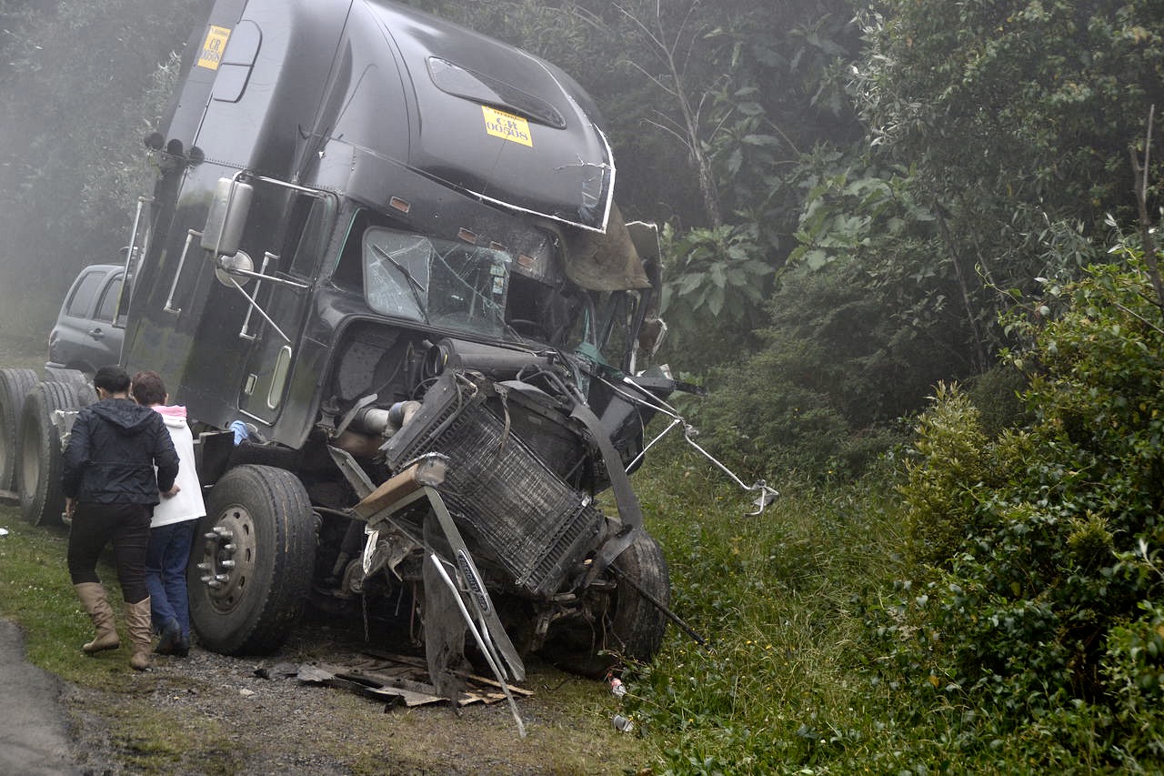 Wanneer we een paar honderd meter gereden hebben zien we een wrak liggen; het is zo’n ouderwetse Amerikaanse Mack waarvan de neus helemaal verdwenen is. Dit zijn ook slechte trucks om tegenaan te rijden. Het andere wrak (wrakken?) is inmiddels afgevoerd maar de lading en onderdelen van de truck liggen overal verspreid. Het moet een beste klapper zijn geweest en je moet er niet aan denken dat we hier een paar minuten eerder waren geweest.