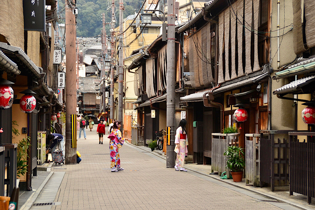 Gion is inderdaad best een leuke wijk. De oude huisjes met bamboe-zonwering zijn aandoenlijk en de wijk-tempel is erg sfeervol. Al-met-al een goed alternatief voor Karuma.
