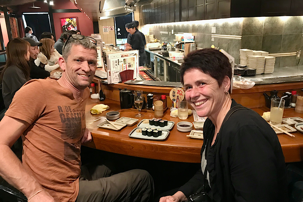 We gingen eerst op zoek naar een restaurantje om te ontbijten en dat valt nog helemaal niet mee in Japan. Je kunt natuurlijk de dag wel beginnen met noedelsoep of rauwe vis, maar een broodje met een bakkie thee is bijna niet te vinden.