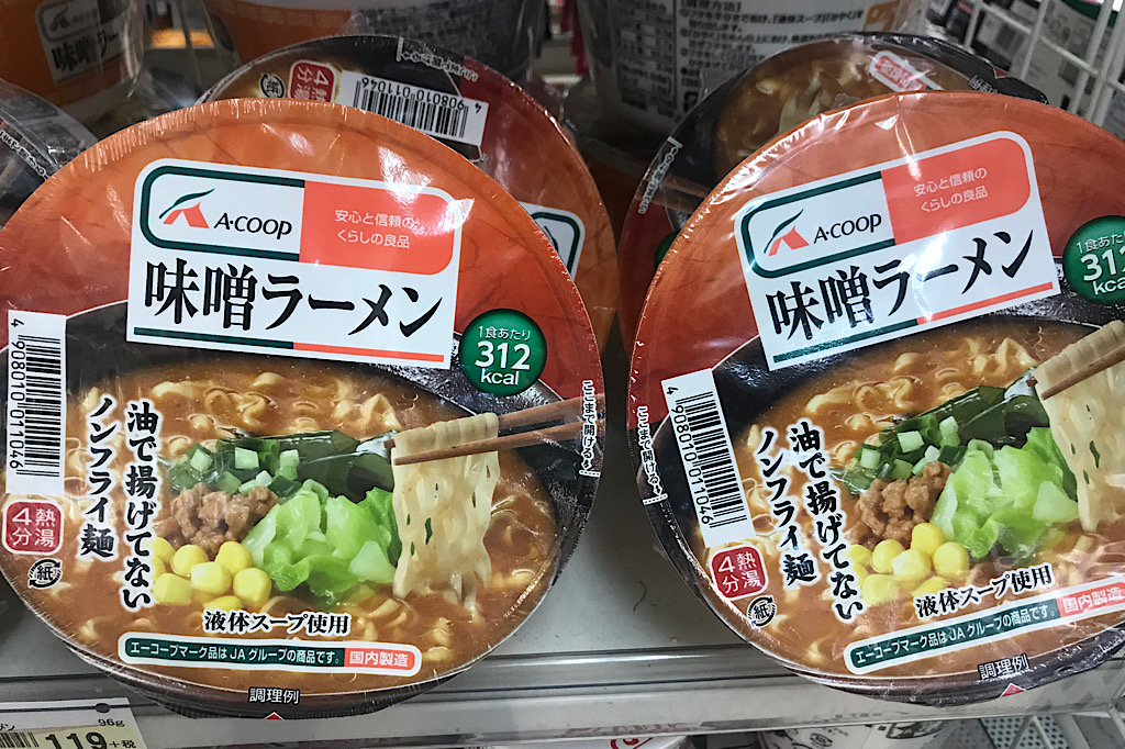 Bij de lokale Coop halen we twee bakken noedelsoep en twee bakjes yoghurt. We nemen ook nog wat te drinken en wat chips voor bij de tv mee en lopen dan terug naar ons guesthouse.