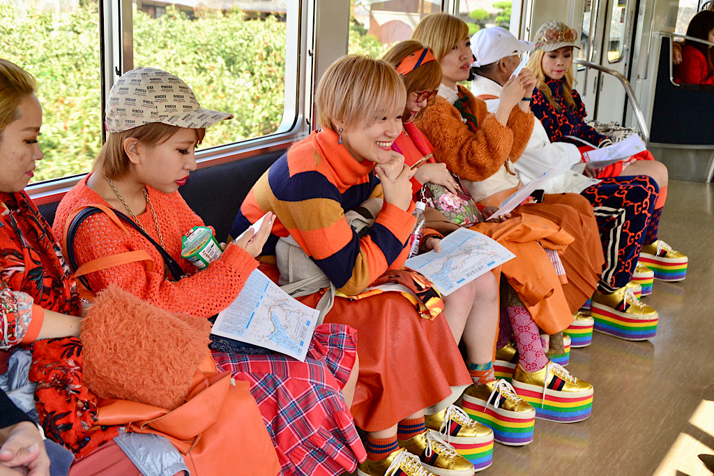 Het treintje dat ons naar Fujisan moet brengen is wel heel apart beschilderd. Dit zou niet misstaan bij de Julianatoren.