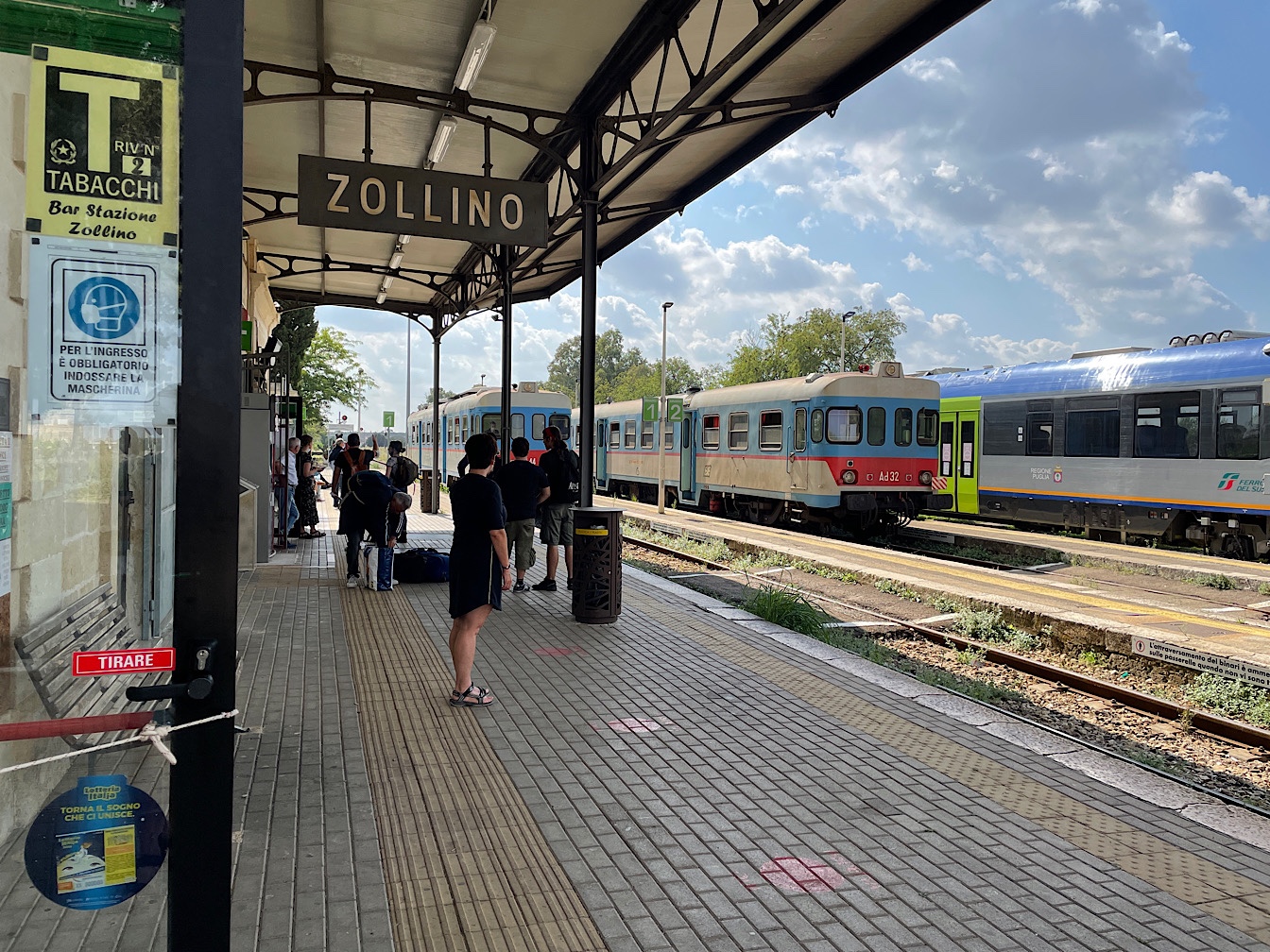 Als we een maandje eerder waren geweest hadden we een rechtstreeks trein of bus kunnen nemen, maar in het na-seizoen gaat het allemaal wat omslachtiger. Eerst met de bus naar Zollino, dan met de trein naar Maglie en daar overstappen op de trein naar Otranto.