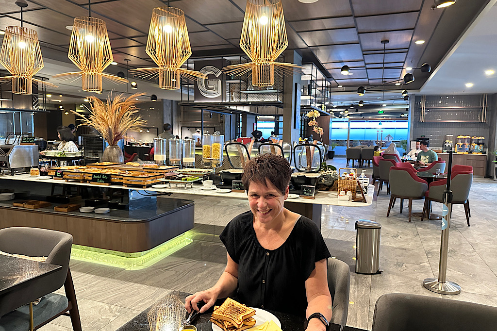 Vandaag een keer geen wekker hoeven zetten en dan gaan we ook maar wat langer naar het ontbijtbuffet.