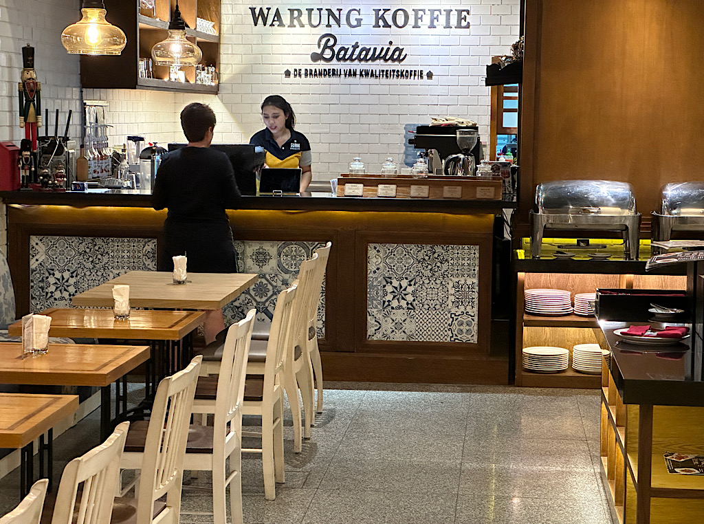 ‘s-Avonds eten we bij Stark voor de laatste keer een nasi en een sate. Daarna drinken we nog een bak koffie bij ‘ Batavia, de branderij van kwaliteitskoffie’ (dat is wat er in grote letters op de muur staat). Dan voor een laatste keer naar het hotel, douchen, rugzakken inpakken en in de taxi.