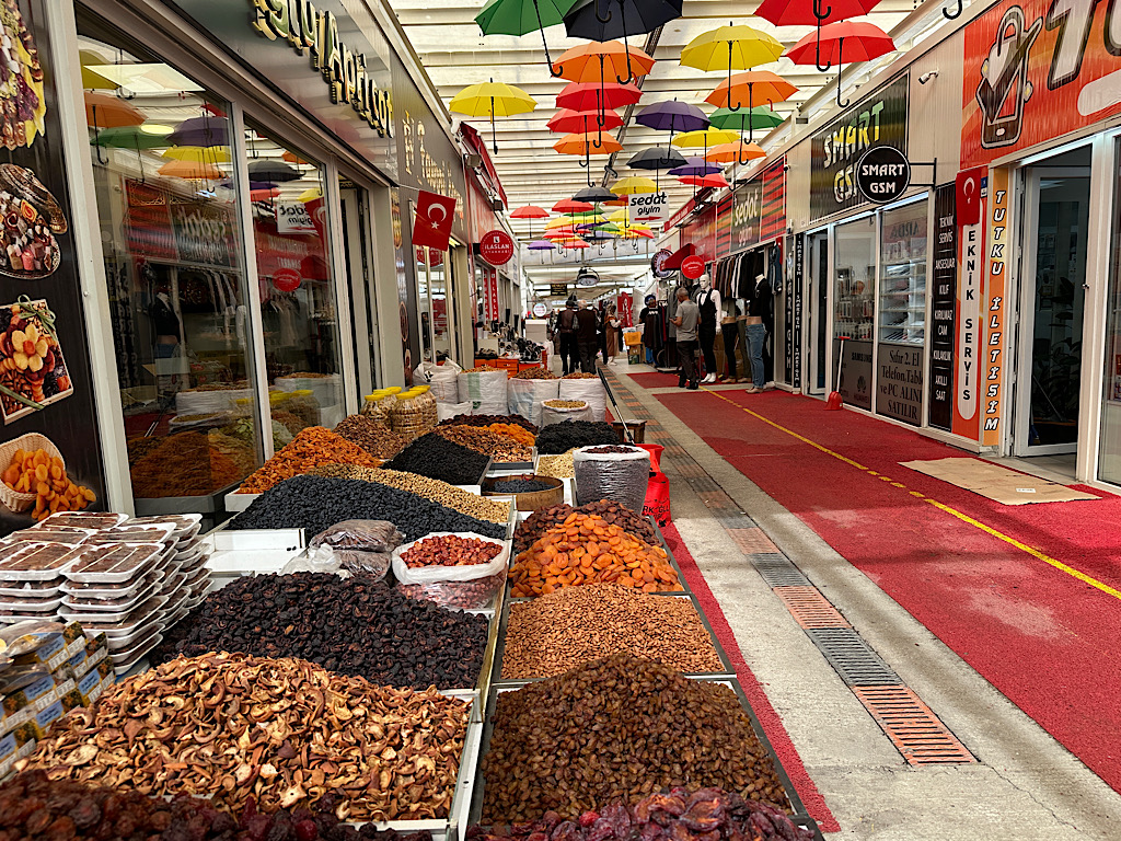 Als je in de abrikoos-stad bent wil je ook abrikozen zien. We gaan dus op weg naar Sire Pazari, de abrikoos-bazaar van Malatya. Het is ongeveer 2km lopen en onderweg zien we nog duidelijk de schade van de aardbeving. Als we op de plek van de bazaar aankomen zien we dat het een grote bouwput is. Deze plek is blijkbaar ook verwoest door de aardbeving. We lopen weer terug want Ramazan had verteld dat er naast de mall ook een abrikozenmarkt moest zijn. Ook op de terugweg zien we de nodig littekens van de aardbeving. Het positieve is misschien wel dat de bevolking de dagelijkse gang weer opgepakt heeft. Op de plek waar voorheen winkels stonden staan nu containers waar winkeltjes in gevestigd zijn.