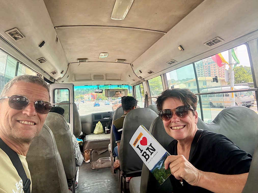 Het is tijd voor de terugreis en dat is nog best een uitdaging. Grab heeft er geen zin in, waarschijnlijk omdat de afstand te groot is, het eerste busje dat we proberen aan te houden rijdt vrolijk door terwijl de chauffeur naar ons terug zwaaite en dan is er een hele tijd niets.