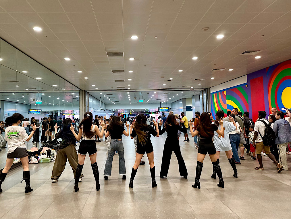 Na de lichtshow springen we weer in de metro en gaan terug naar het hotel. In een van de ondergrondse gangen tussen de verschillende metrolijnen zijn meiden dansjes aan het oefenen. Deze gang heeft nl. allemaal spiegels en zo is het net een dansschool.
